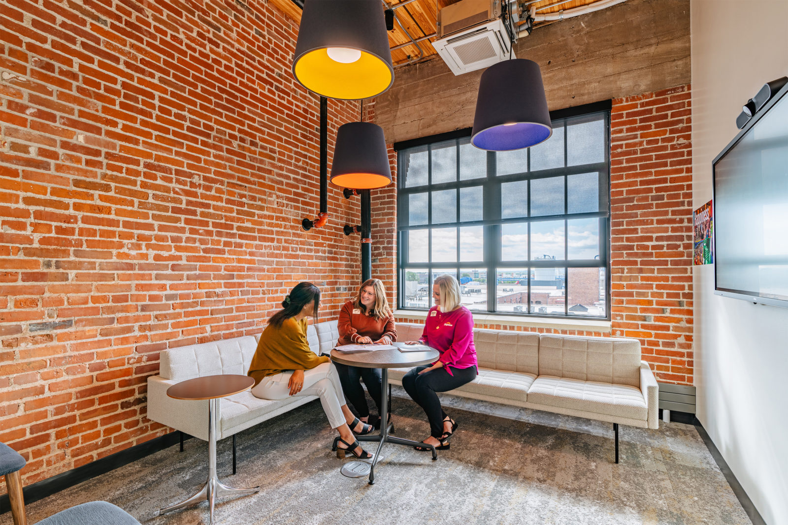 Along with the intention of keeping the rich history of the building visible, the vibrancy of the company’s brand and culture was brought into the space through seating and workstation screen fabric selections. Canvas workstations were utilized for a concise kit-of-parts, allowing for easy reconfigurations as the teams’ needs change, and Mirra task seating was used to promote ergonomic support and comfort for the employees as they work each day in their new space.